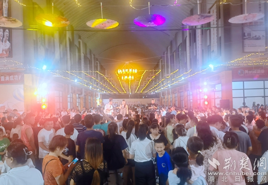 當天晚上,記者在鄂東蝦谷美食街上見到,前來就餐游客絡繹不絕,餐桌上,食客大快朵頤小龍蝦。美食街上,熱鬧非凡,一兩百桌,桌桌爆滿。