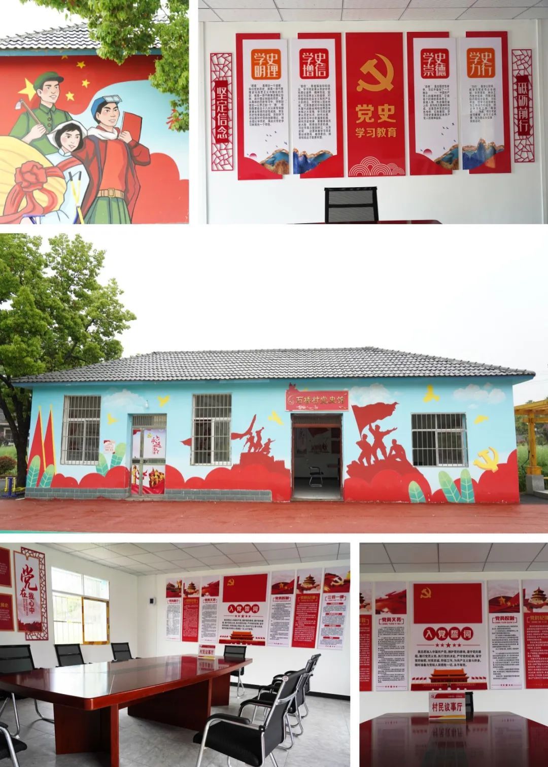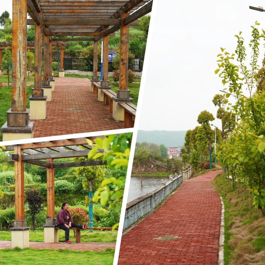 將農(nóng)具鑲嵌在墻上村民休憩的長(zhǎng)廊與涼亭