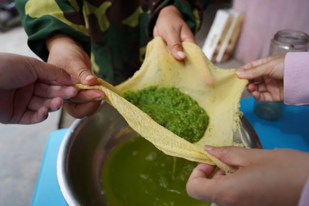 采艾草最鮮嫩的葉尖兒煮沸后過濾出青色汁液