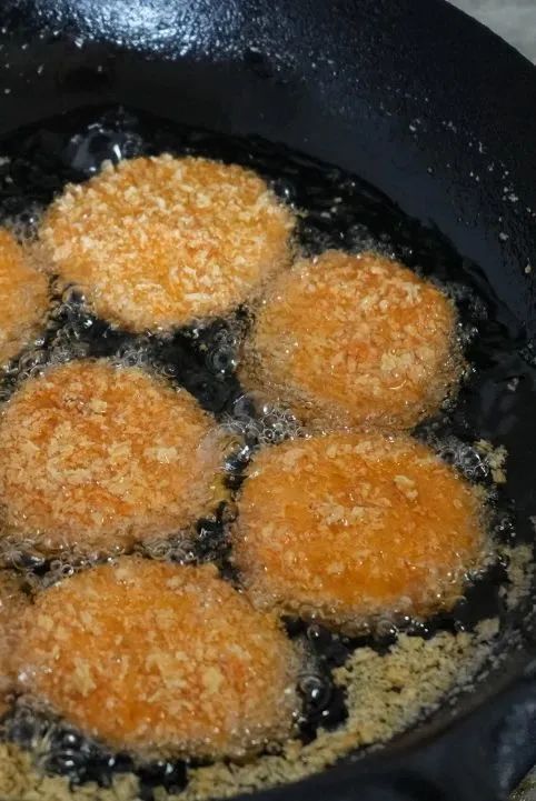 油炸出鍋后的南瓜餅