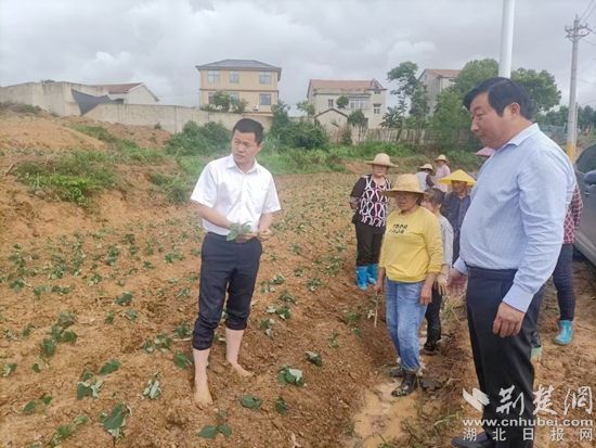 荊楚網(wǎng)(湖北日報網(wǎng))訊(通訊員毛紅平)6月25日,天空下著蒙蒙細雨,紅安縣永佳河鎮(zhèn)沙河村帥家河塆河畈地1000畝連片基地上,150多位村民正穿著雨衣,飛快地搶栽紅苕苗。