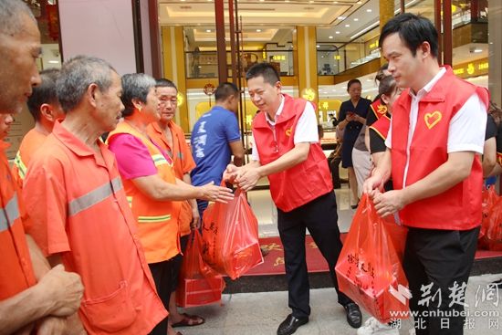 荊楚網(wǎng)(湖北日報(bào)網(wǎng))訊(通訊員 曹競帆 張萍)“這個愛心大禮包太實(shí)用了?!?月19日,在黃梅縣“愛心冰柜 清涼梅城”新時(shí)代文明實(shí)踐志愿服務(wù)活動啟動儀式上,拿到裝有水果罐頭、綠豆的防暑降溫禮包后,該縣黃梅鎮(zhèn)環(huán)衛(wèi)工人吳大姐微笑著豎起大拇指,“有了這些‘愛心冰柜’,我和工友們以后補(bǔ)水就很方便了!”