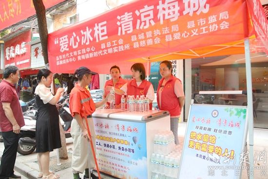 據(jù)悉,黃梅縣“愛心冰柜 清涼梅城”新時(shí)代文明實(shí)踐志愿服務(wù)活動由該縣新時(shí)代文明實(shí)踐中心牽頭發(fā)起,將從7月中旬持續(xù)開展至8月底。目前,黃梅中心城區(qū)設(shè)置的3個“愛心冰柜”志愿服務(wù)點(diǎn)均已上崗。