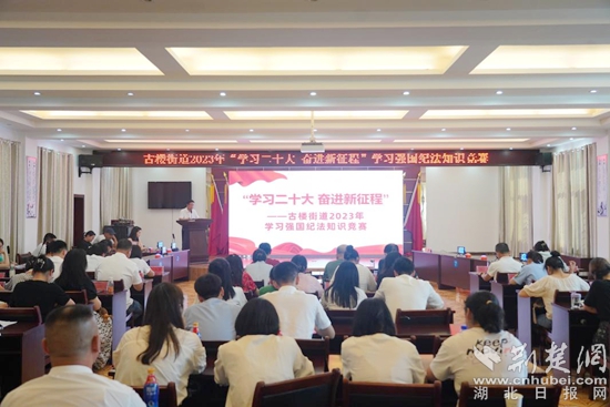 荊楚網(wǎng)(湖北日報網(wǎng))訊(通訊員丁元中)7月26日下午,鄂城區(qū)古樓街道舉辦“學(xué)習(xí)二十大,奮進(jìn)新征程”學(xué)習(xí)強(qiáng)國紀(jì)法知識競賽。全街社區(qū)、股經(jīng)社、中心學(xué)校、市場監(jiān)管所、飛鵝衛(wèi)生服務(wù)中心、怡亭銘衛(wèi)生服務(wù)中心、街辦機(jī)關(guān)等20支代表隊60名選手參賽。