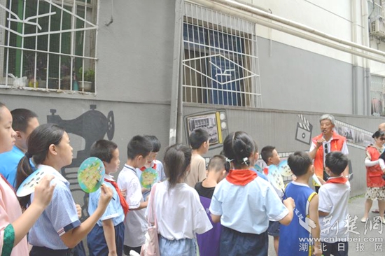 早上9時(shí),大家來到老公安局小區(qū)歷史文化長(zhǎng)廊研學(xué)點(diǎn),小朋友們?cè)谏绻さ膸ьI(lǐng)下井然有序地聽取“紅領(lǐng)巾”小小講解員張景婷講述著“老公安局小區(qū)是古樓街歷史上繁華的一個(gè)商業(yè)中心,曾經(jīng)在明朝和清朝兩代570多年,這里是武昌縣衙門的所在地......”的歷史,大家仿佛看見了那個(gè)熱火朝天的時(shí)代。