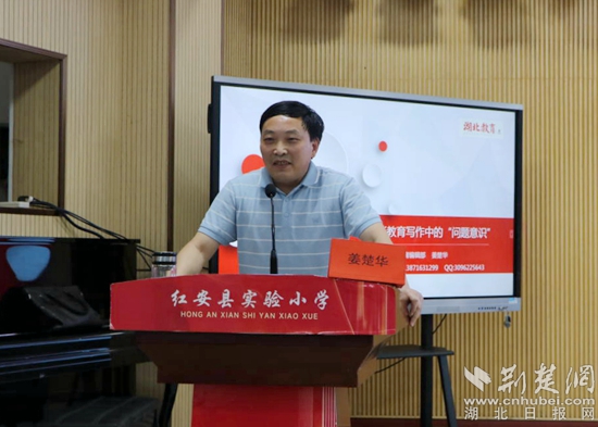 下午,《湖北教育》執(zhí)行主編、高級教師姜楚華作題為《問題是我們的朋友——談談教育寫作中的“問題意識”》的主題講座。他從問題意識的表現(xiàn)形式、問題意識的培植方式、問題意識與寫作等三個方面深入講解,借助生動的案例與深厚的積淀,引導大家大膽質疑、主動思考、積極創(chuàng)新,將“問題意識”轉化為教育寫作新視角、新動能與新成果。