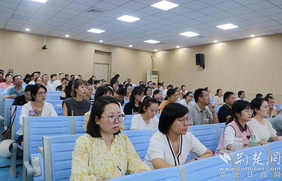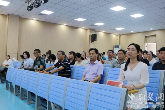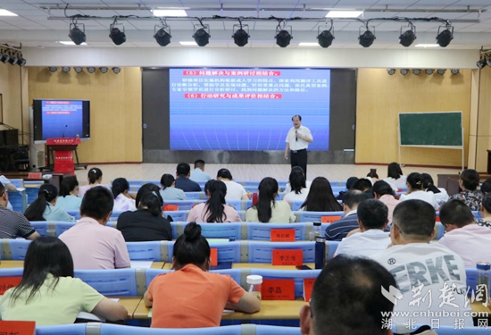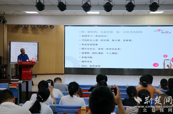 8月16日上午,黃石八中總校長、特級教師、正高級教師郭茂榮作題為《務教育之本 悟成長之道—教師工作坊建設的實踐與思考》的主題講座。他通過成長經(jīng)歷和典型案例,運用風趣的語言深刻詮釋了“立德樹人是教育之本,知其心是教師之本,悟其道是成長之要”,還交流了教師工作坊建設、運行、管理、評價等方面的經(jīng)驗。