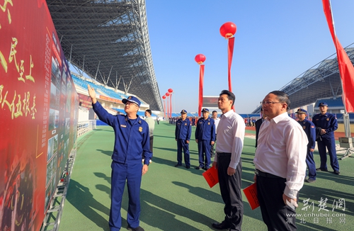 在啟動(dòng)儀式現(xiàn)場(chǎng),同步舉辦改革轉(zhuǎn)隸五周年紀(jì)念成果展,該展覽通過(guò)系列展板和攝影作品,反映黃岡市消防救援隊(duì)伍五年來(lái)黨建隊(duì)建和消防救援事業(yè)邁向高質(zhì)量發(fā)展的嶄新氣象。