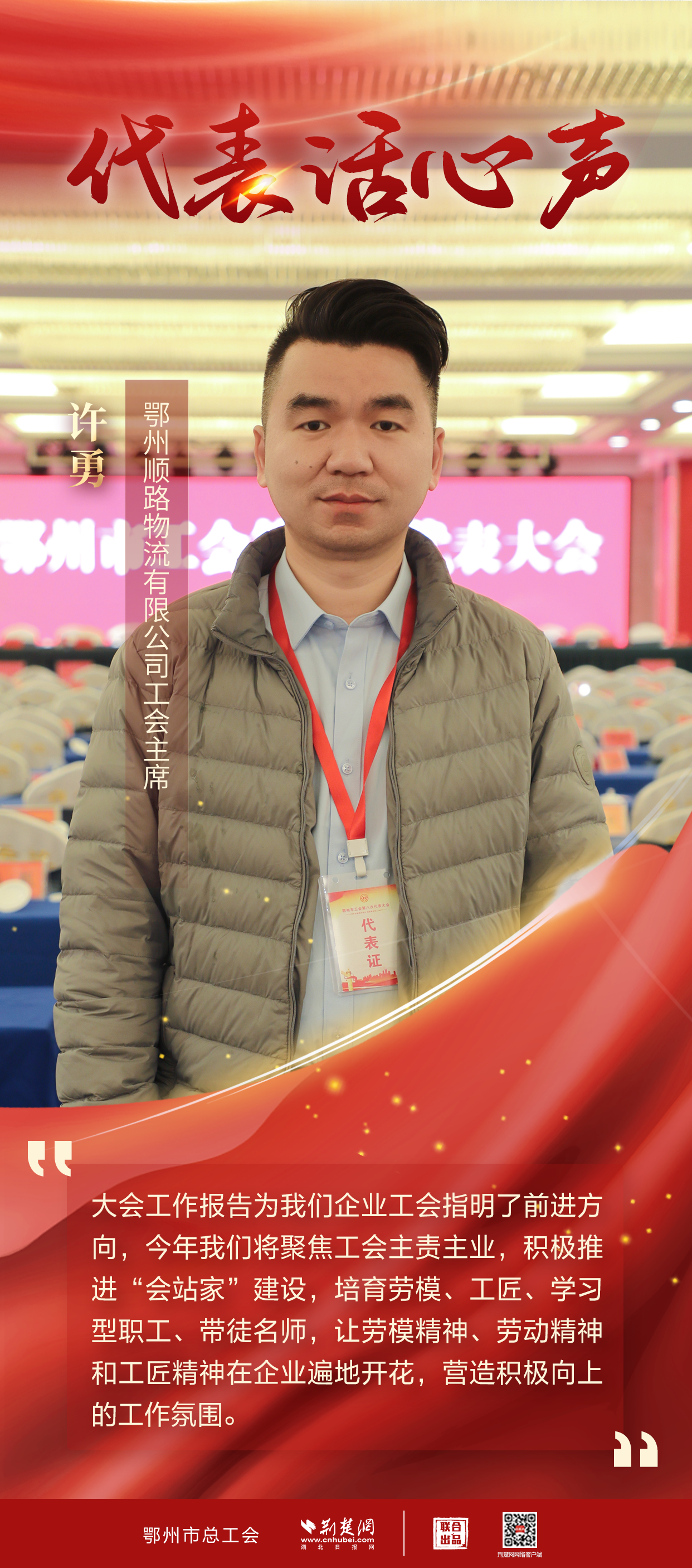 荊楚網(wǎng)(湖北日報網(wǎng))訊(記者 姜夢瑤 實習(xí)生 趙永春、張玖杰 通訊員 魏君)1月4日,鄂州市工會第八次代表大會開幕,來自全市各行各業(yè)的233名代表一同談發(fā)展、說變化、道期盼。