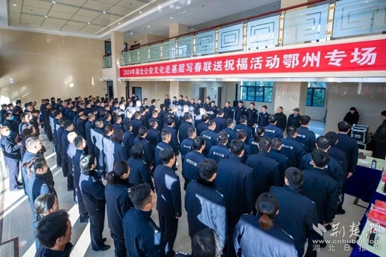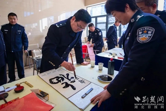荊楚網(wǎng)(湖北日?qǐng)?bào)網(wǎng))訊(通訊員 王廳 張宏斌)迎春納福送春聯(lián),翰墨飄香暖警心。1月23日上午,省廳政治部、湖北公安文聯(lián)組織全省公安機(jī)關(guān)書法藝術(shù)家走進(jìn)鄂州市公安局,開展寫春聯(lián)送祝福活動(dòng)。