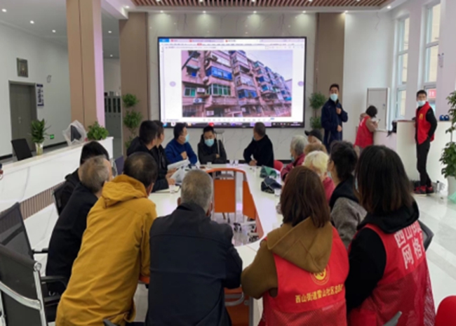 在34棟天面整治項目中,雷山社區(qū)通過“線上+線下”創(chuàng)新共謀方式對居民需求摸底,引導(dǎo)居民參與建言獻(xiàn)策,搭建社區(qū)議事廳-網(wǎng)格驛站-議事點等共謀陣地5處,從居民反映最強烈為主進(jìn)行開展入戶摸排了解情況。