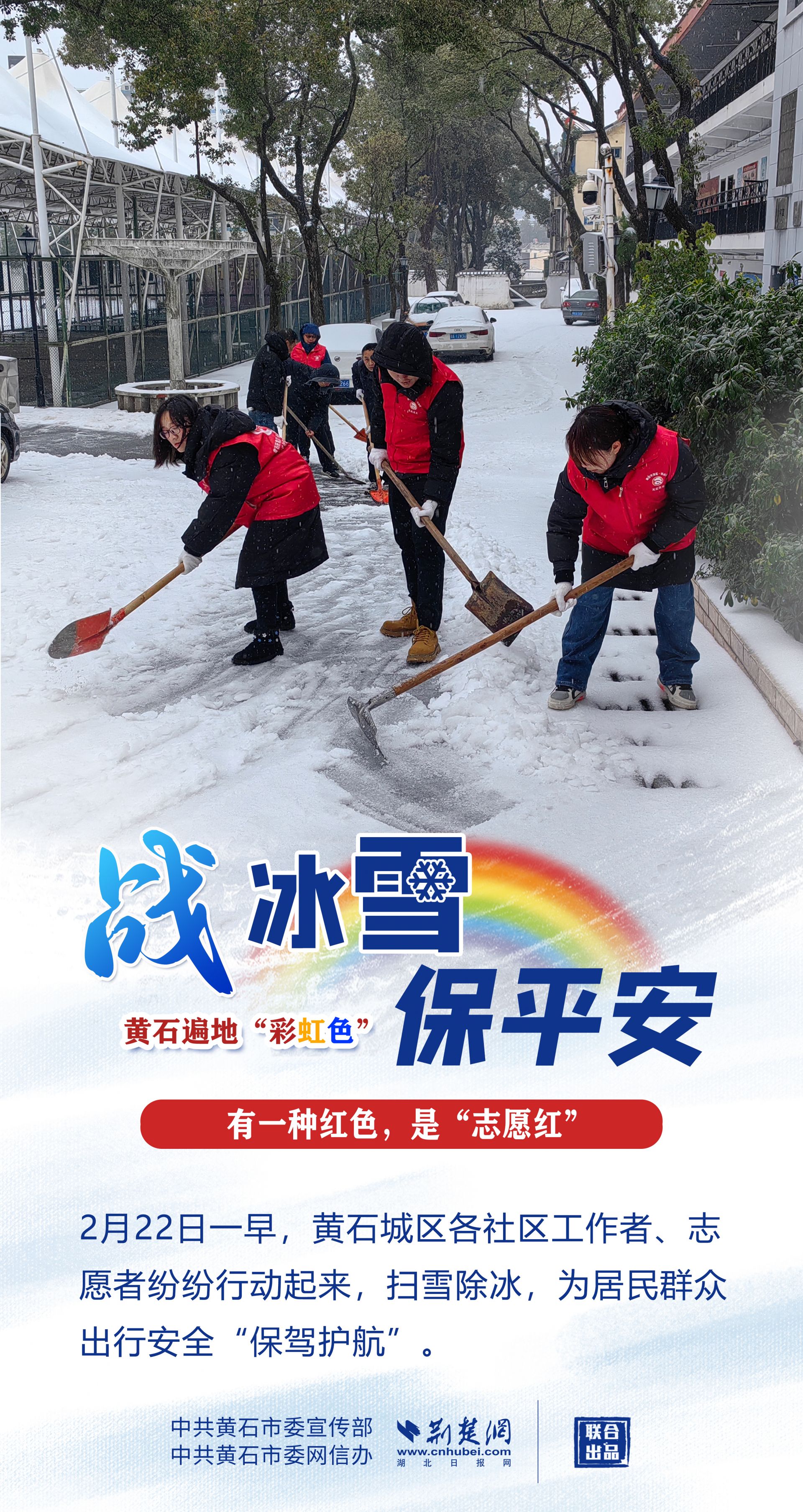 志愿紅、應急橙、警察黃、郵政綠……黃石各地、各部門以雪為令,迎風戰(zhàn)雪,市縣兩級2.4萬下沉黨員干部迅速到位,各項工作快速有序鋪開,全力保障人民群眾生命財產(chǎn)安全,最大限度減輕冰雪帶來的影響。