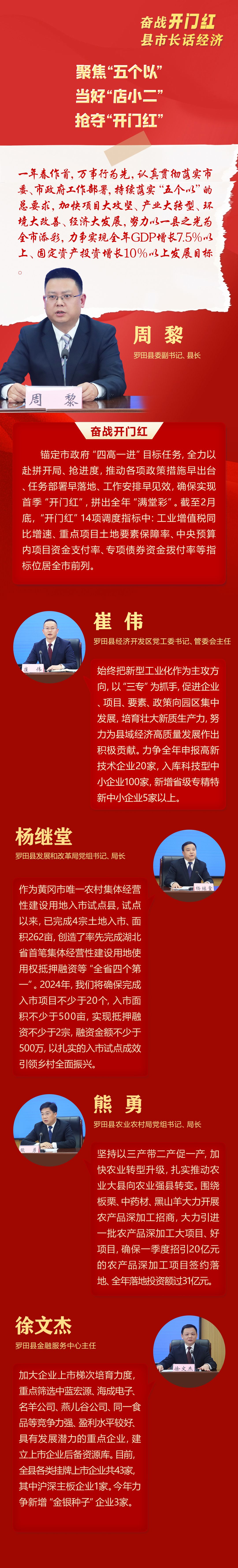 3月14日,黃岡召開“奮戰(zhàn)開門紅 縣市長話經(jīng)濟”系列新聞發(fā)布會,羅田縣就聚焦“五個以”,當(dāng)好“店小二”,搶奪“開門紅”相關(guān)情況回答社會關(guān)切。