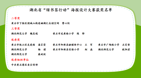 活動期間,現場還公布了黃石市參加2024年湖北省“綠書簽行動”海報設計大賽優(yōu)秀作品、優(yōu)秀組織單位,并為獲獎單位和代表進行頒獎。