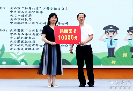 中國郵政集團有限公司黃石城區(qū)分公司副總經理柯海平表示,將積極參與“掃黃打非”工作,落實郵政快遞業(yè)“收寄驗視、實名登記、過機安檢”三項制度,加大“畫像法”的宣貫力度,嚴防非法出版物流入寄遞渠道;積極宣傳“掃黃打非”有關政策法規(guī),引導告知廣大群眾不得寄遞非法有害出版物,共同助力未成年人健康成長,并向黃石市武黃路小學捐贈1萬元圖書。