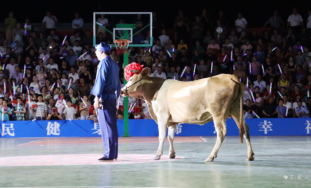 19時30分許,開幕式開始,聲聲震天的威風鑼鼓、剛勁有力的武術表演、青春動感的健身舞蹈以及活力十足的歌曲串燒,一次次引來現(xiàn)場的歡呼喝彩。當工作人員牽著“冠軍?!边M入場地那一刻,現(xiàn)場的熱烈氛圍再次被引向高潮。