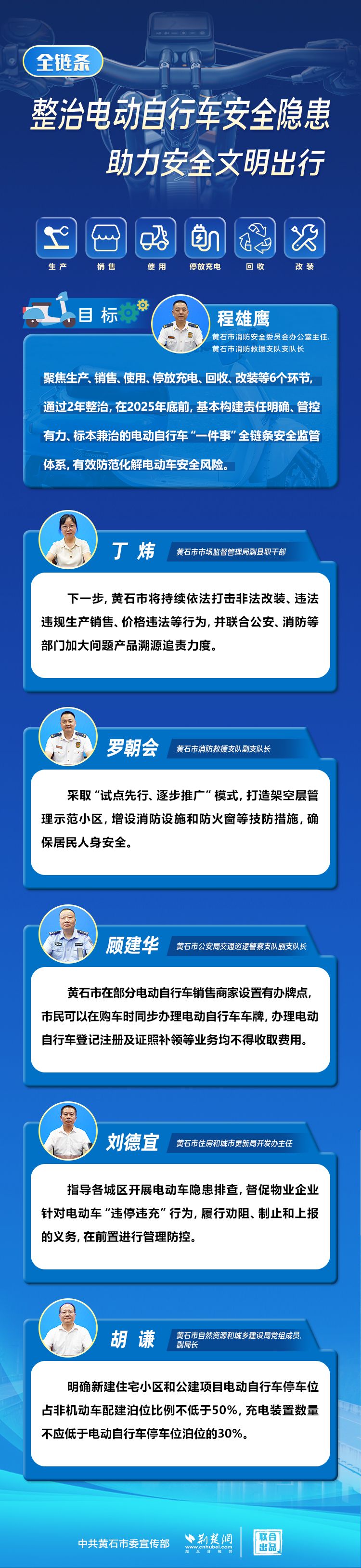 荊楚網(wǎng)(湖北日報網(wǎng))訊(記者 劉璐 通訊員 李玉)8月15日,黃石召開新聞發(fā)布會,通報全市電動自行車安全隱患全鏈條整治行動總體情況。會上提出,在2025年底前,基本構(gòu)建責任明確、管控有力、標本兼治的電動自行車“一件事”全鏈條安全監(jiān)管體系。