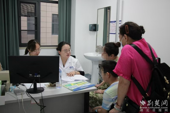 在診室坐診的便是武漢協(xié)和醫(yī)院金銀湖院區(qū)兒科負(fù)責(zé)人蔡馥丞副教授和黃石市第二醫(yī)院兒科副主任張芷銘。在診室門(mén)前,前來(lái)就診人員排起長(zhǎng)隊(duì),許多家長(zhǎng)眉頭緊皺,臉上寫(xiě)著同一個(gè)疑問(wèn):我的孩子怎么了?