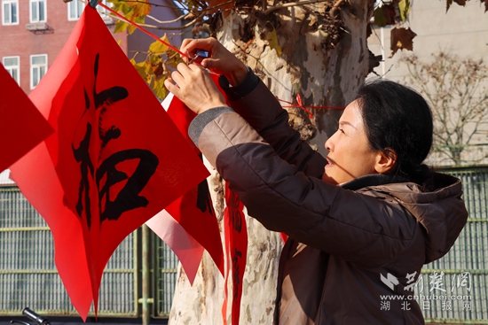 書協(xié)志愿者寫春聯(lián)。阮瓊 攝