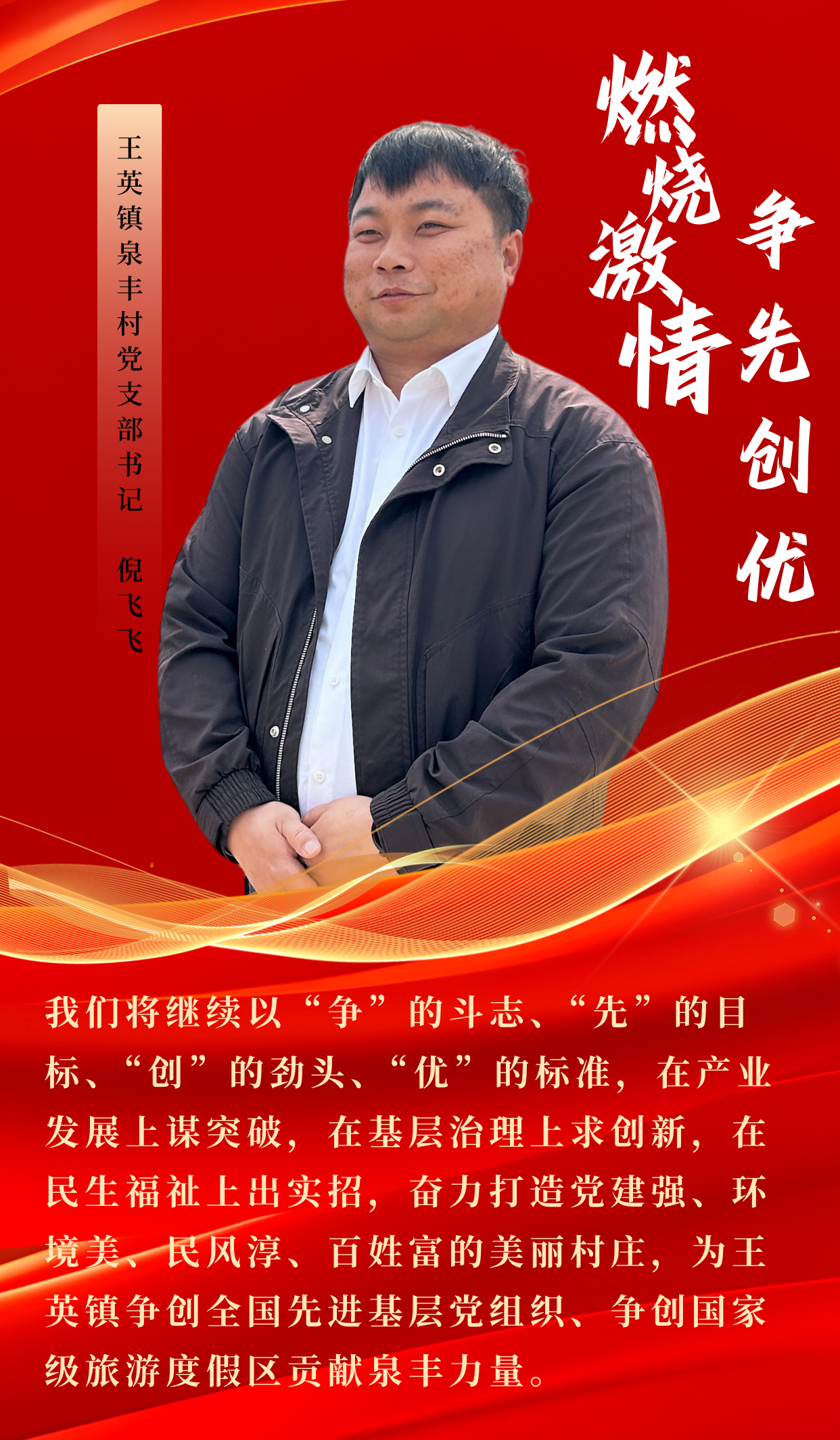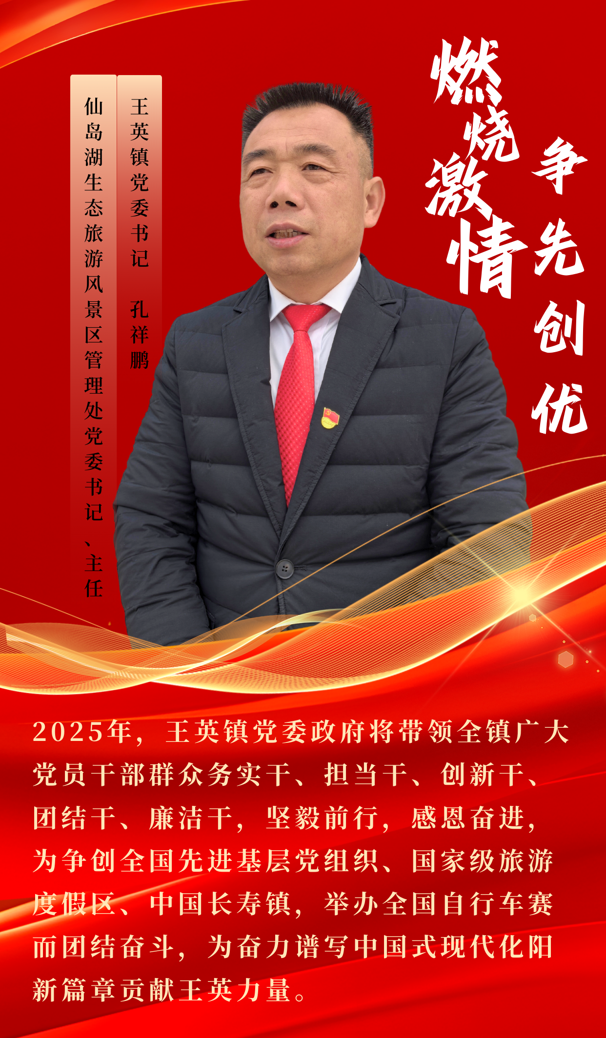該鎮(zhèn)全體黨員干部熱血沸騰,為爭(zhēng)創(chuàng)全國(guó)先進(jìn)基層黨組織、爭(zhēng)創(chuàng)國(guó)家級(jí)旅游度假區(qū)、中國(guó)長(zhǎng)壽鎮(zhèn),以及舉辦全國(guó)自行車賽目標(biāo)摩拳擦掌。新的一年,王英鎮(zhèn)將以“拼”的意識(shí)、“搶”的狀態(tài)、“進(jìn)”的作為,發(fā)起新的沖刺,以鎮(zhèn)域之彩點(diǎn)亮縣域之光。