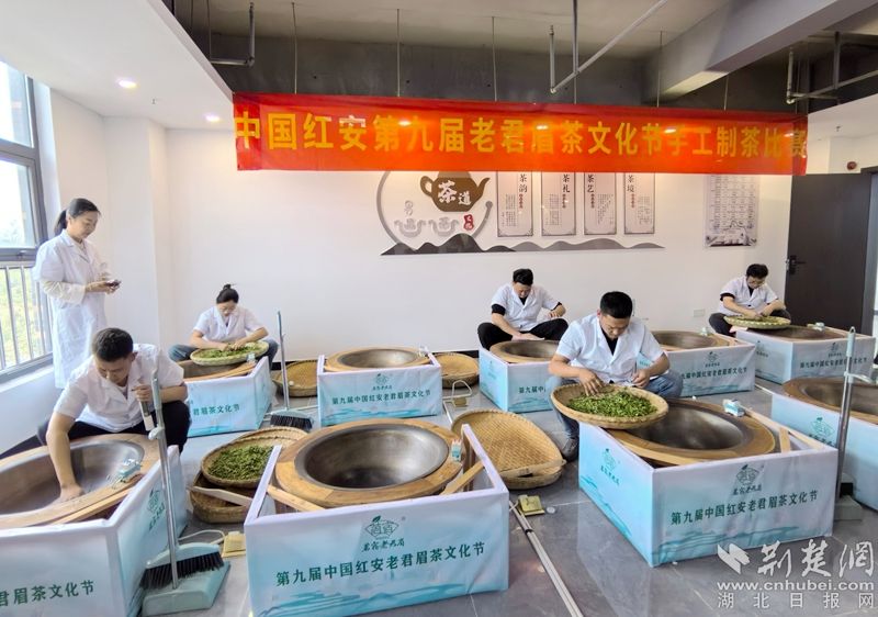 手工制茶區(qū)更是人頭攢動。6位資深制茶師在龍頭鍋前揮汗如雨。“手工制茶,是制茶師與鮮葉的心靈對話,這一鍋茶葉,要經(jīng)歷殺青、揉捻、干燥等多道工序,在接近2小時的操作中,要時刻關注鮮葉的變化,控制溫度,調整手法。”老君眉手工制茶非遺傳承人劉定齊邊操作邊講解。