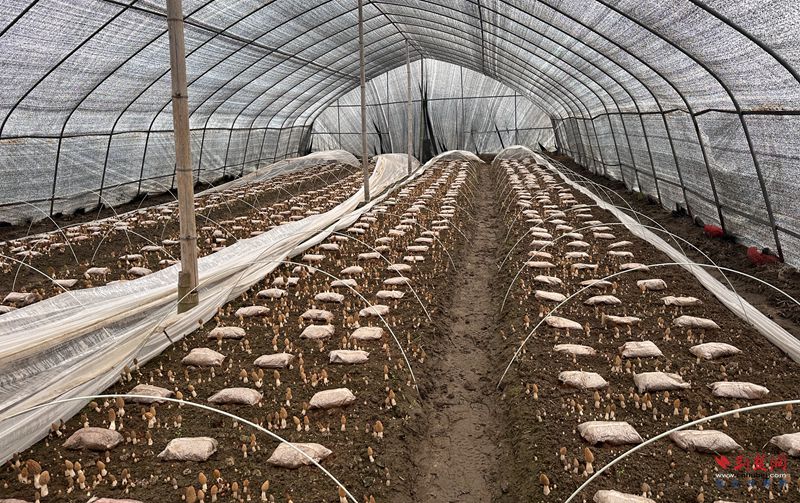 在外婆橋生態(tài)農(nóng)莊,羊肚菌大棚內(nèi)菌香四溢,工人們正將新鮮菌菇分揀裝箱;不遠(yuǎn)處的綠皮火車主題咖啡館別具特色。