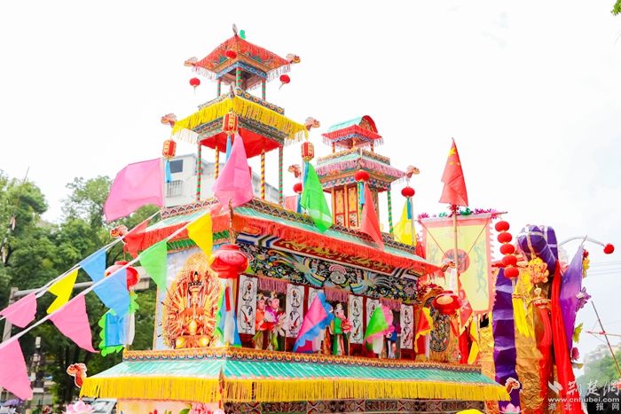 今年巡游的旱龍舟長6米長、有4.36米高,主要用竹篾扎制,由龍頭、中倉、龍尾等組成,全舟分上中下三層,以“屈原”和“龍”為中心,72神像環(huán)繞。舟身下層有24名“水手”,象征著24個節(jié)氣;中層的12“花神”,代表一年12個月。每一具神像承載著澤林民眾的生活智慧以及祈福求祥的善良愿望。