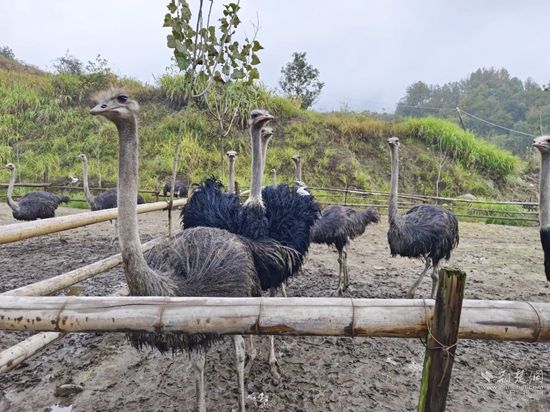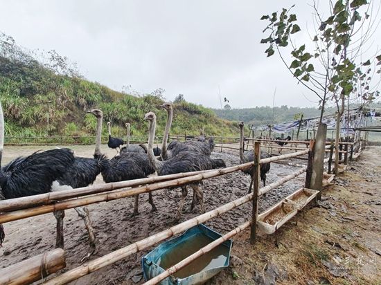 2020年春節(jié)期間,劉富高返鄉(xiāng)創(chuàng)業(yè)承包了組里多年的荒山,修通了簡易路,搭建了宿舍,做起了圍欄。首先從廣東購回了60只小鴕鳥試養(yǎng),在精心的喂養(yǎng)中成活率達(dá)到了98%。