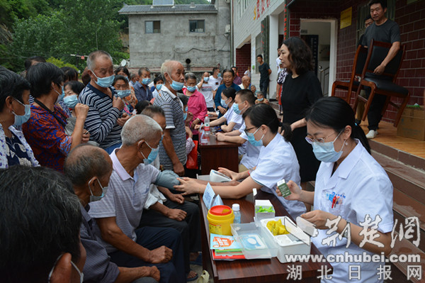楊柳村位于位于鄖陽區(qū)西南部的大山深處,距離十堰市區(qū)50余公里,是十堰市稅務(wù)局鄉(xiāng)村振興聯(lián)系點,村里以老年人居多。聽說市人民醫(yī)院的專家要來義診,村民們早早就來到村委會,在市稅務(wù)局駐村工作隊的精心組織下,佩戴口罩排起了長隊。簡短的介紹儀式結(jié)束后,來自市人民醫(yī)院心血管內(nèi)科、兒科、消化內(nèi)科、睡眠醫(yī)學(xué)科、內(nèi)分泌科等專業(yè)學(xué)科的8位專家便立即開始為村民診療。