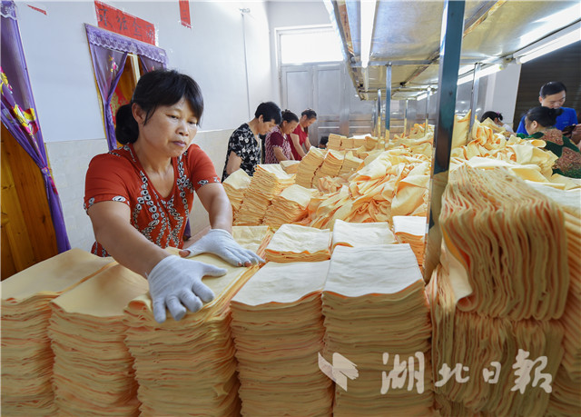 崇陽縣肖嶺鄉(xiāng)白馬村扶貧車間。(湖北日報全媒記者 陳勇 攝)