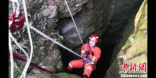 中新網(wǎng)咸寧3月11日電 (朱燕林 范斌斌)湖北咸寧一男子因好奇,攀爬山洞探險,因體力不支被困洞底。當(dāng)?shù)叵绬T接警后,利用救援繩索將其成功營救出山洞。