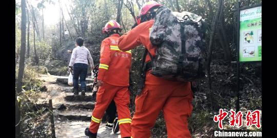 消防員帶上救援工具,徒步半個多小時趕赴事發(fā)現(xiàn)場開展救援 朱燕林 攝