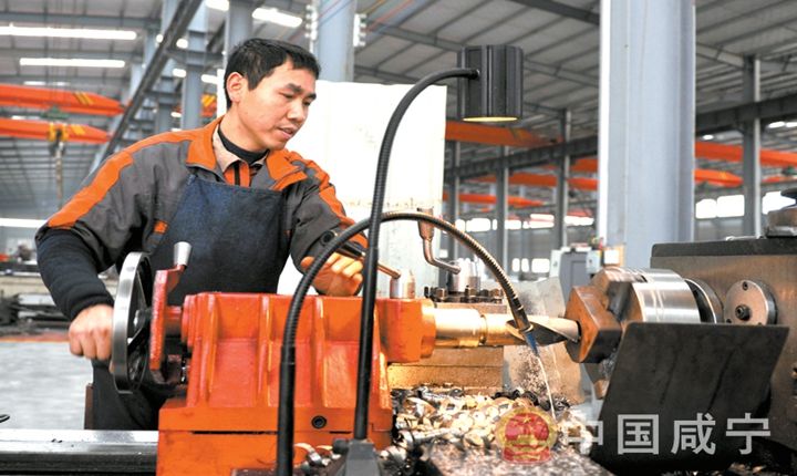 11日,通山縣經(jīng)濟(jì)開發(fā)區(qū)工業(yè)園,來自南林橋鎮(zhèn)的村民徐立光在星光玉龍機(jī)械(湖北)有限公司房內(nèi)進(jìn)行車床外加工。