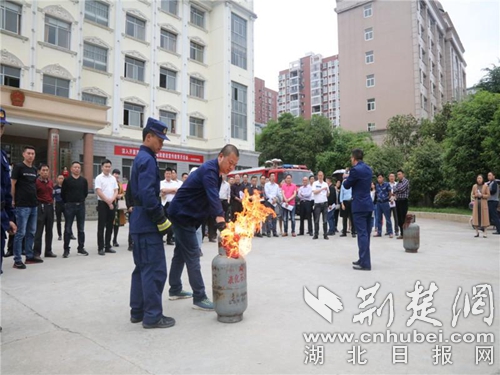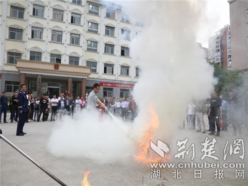 圖為消防宣傳員現(xiàn)場傳授滅火知識。 程遠(yuǎn)攝