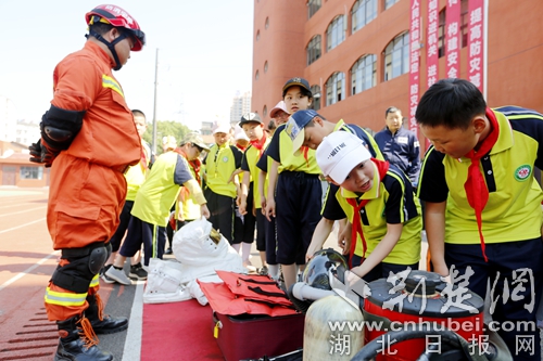 圖為師生參觀消防裝備器材現(xiàn)場。 官易洲攝