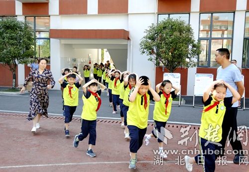 圖為防災減災活動現(xiàn)場師生逃生演練。 官易洲攝