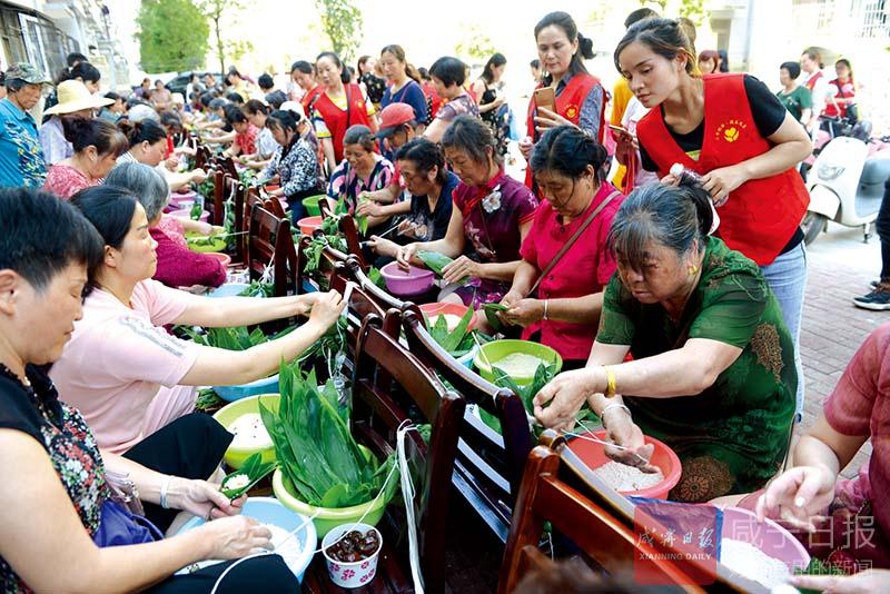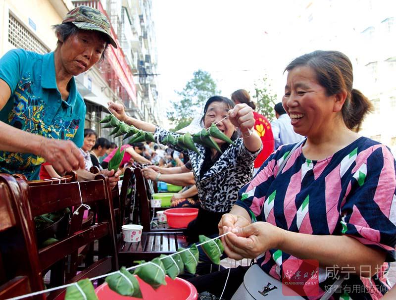 “瞧,這個(gè)粽子包得真好,不僅個(gè)頭飽滿,而且有棱有角”“蜜棗餡的粽子,還沒煮就已經(jīng)覺得很香了”……4號(hào)下午,在咸安區(qū)永安街道辦事處北正街社區(qū)幸福家園小區(qū),擠滿了社區(qū)居民,咸寧第二屆大型包粽子大賽北正街社區(qū)分賽正在進(jìn)行,居民們邊包粽子邊拉家常,好不熱鬧。