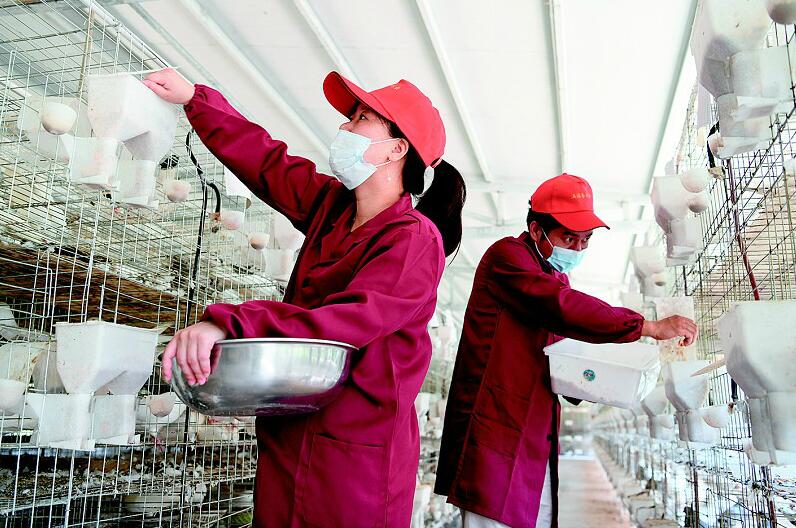 7月3日,通城縣北港鎮(zhèn)大界村土鴿養(yǎng)殖專業(yè)合作社社員在給土鴿喂食。該合作社是通城返鄉(xiāng)創(chuàng)業(yè)女青年劉慶創(chuàng)辦,建設(shè)標(biāo)準(zhǔn)化土鴿養(yǎng)殖基地,飼養(yǎng)近萬對(duì)土鴿。合作社采取“支部+合作社+基地+貧困戶”模式,吸納當(dāng)?shù)?0戶貧困戶打工就業(yè),10戶貧困戶入股分紅,帶動(dòng)周邊近百戶貧困戶發(fā)展養(yǎng)鴿增收脫貧。