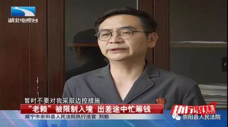 崇陽(yáng)縣法院執(zhí)行法官劉勃:“法院現(xiàn)在對(duì)失信被執(zhí)行人有個(gè)措施,就是限制出入境,我就跟他講,我說你回不來(lái)了。”