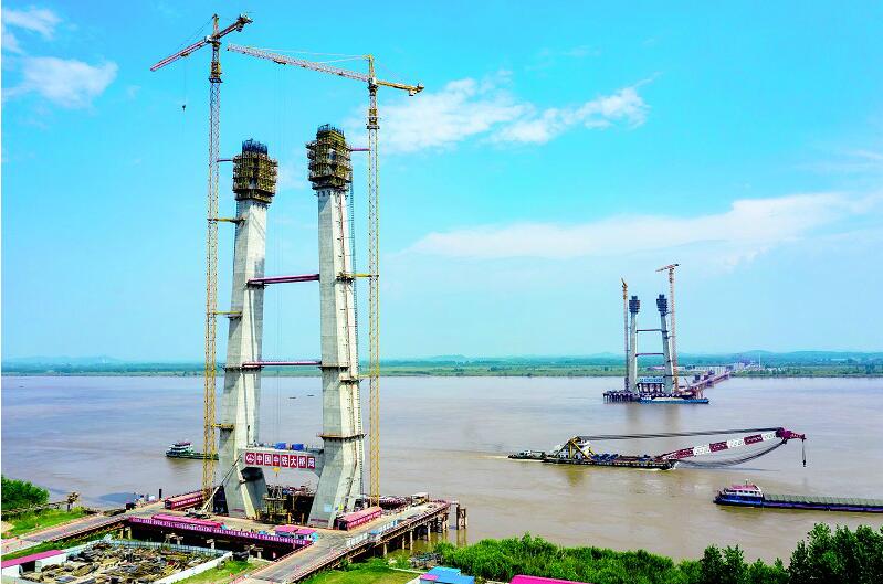 8月21日,赤壁長江大橋正在進(jìn)行南北主塔中塔柱施工,南北主塔高度達(dá)到了133米,占總高度的60%左右。赤壁長江大橋連接赤壁市與洪湖市,主橋是雙塔雙索面斜拉結(jié)構(gòu),主塔為H形。承建單位中鐵大橋局在高溫天氣縮短白天施工時間,早晚補(bǔ)工,保障施工進(jìn)度不因酷暑延后。預(yù)計明年2月能按期實現(xiàn)主塔封頂?shù)仁┕つ繕?biāo)。(視界網(wǎng) 馬海斌 攝)