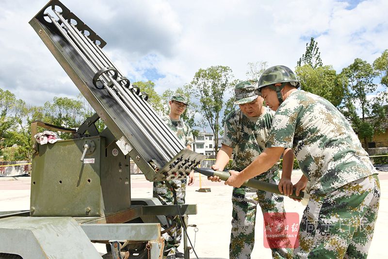 26日,在崇陽縣港口鄉(xiāng)中學,該縣氣象局工作人員正在此架設火箭炮,守候?qū)α髟茖樱プ∮欣麜r機實施人工增雨抗旱作業(yè)。