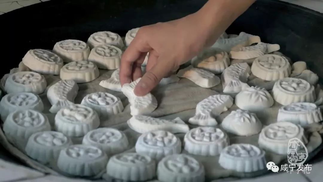 印子粑是咸寧鄉(xiāng)村廣為流傳的民俗食品,一般在春節(jié)和孩子一歲生日時制作。粑印用木制,每個粑印有1-3個空模,形狀一般只有小茶杯口大。粑印里刻有反向的如魚以及花、草等各種動植物圖案,制作出來的粑邊緣有一圈花紋,形象生動,栩栩如生。堆成的粑山,晶瑩透亮,造型美觀,堪稱優(yōu)秀的民間藝術品。