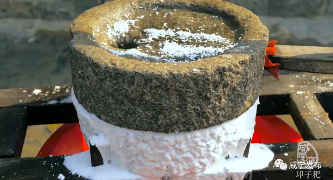 糯米淘洗后浸泡兩三個小時,或舂或磨做米粉,這是做印子粑的第一道工序。