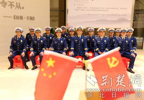 圖為消防指戰(zhàn)員全體學習黨章現(xiàn)場。通訊員 朱燕林攝