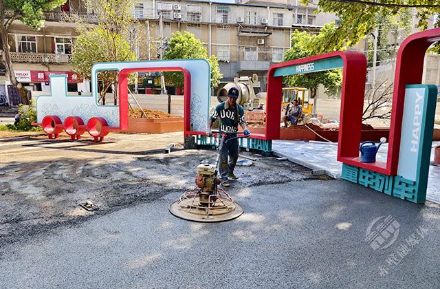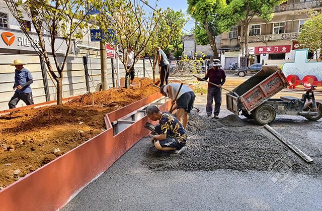 8月8日,在赤壁市車站路兒童友好街區(qū)施工現(xiàn)場(chǎng),來(lái)自赤壁建工集團(tuán)的工人們,正在機(jī)械的配合下,有條不紊地進(jìn)行著街道改造施工。