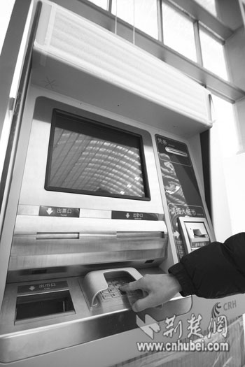 武漢站內(nèi)的自助售票機(記者譚新杰攝)