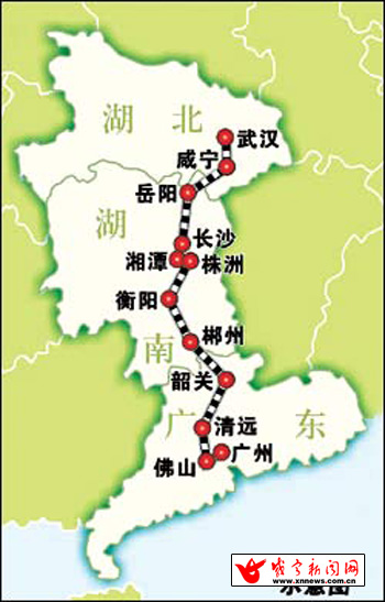 據(jù)介紹,待武廣客運(yùn)專線建成后,京廣線和武廣線將實(shí)行客貨分流,原京廣線主要走貨運(yùn),武廣線走客運(yùn)。