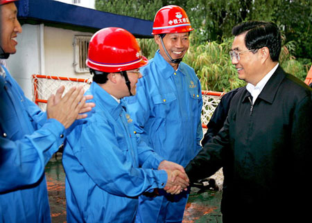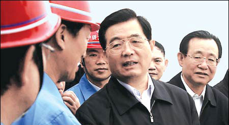 中共中央總書記胡錦濤與施工代表親切交談