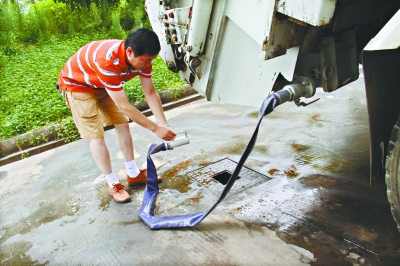 工人師傅說,改裝后,每輛車可以排出至少70%的水分。今后轉(zhuǎn)運(yùn)垃圾時(shí),就近找個下水道,可將垃圾擠干后再運(yùn),不僅解決隨地“大小便”問題,還能增加運(yùn)輸量,一舉多得。