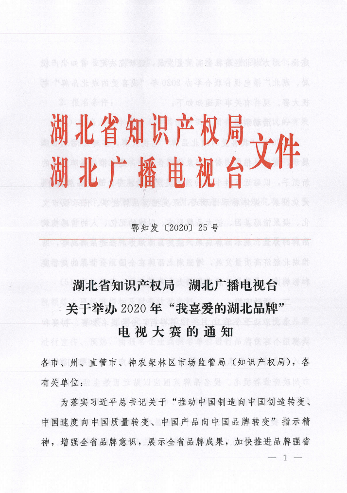 金秋十月,由湖北省知識(shí)產(chǎn)權(quán)局、湖北廣播電視臺(tái)主辦,湖北省知識(shí)產(chǎn)權(quán)發(fā)展中心、湖北廣播電視臺(tái)電視綜合事業(yè)部承辦的“2020我喜愛(ài)的湖北品牌電視大賽”正式啟動(dòng)。